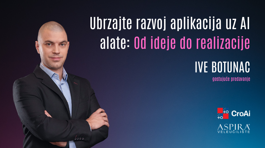 U ponedjeljak 16. prosinca Veleučilište Aspira organiziralo je gostujuće predavanje na prijediplomskom studiju Računarstva. Gost predavač bio je Ive Botunac, jedno od vodećih domaćih imena u IT industriji i primjeni AI tehnologije.