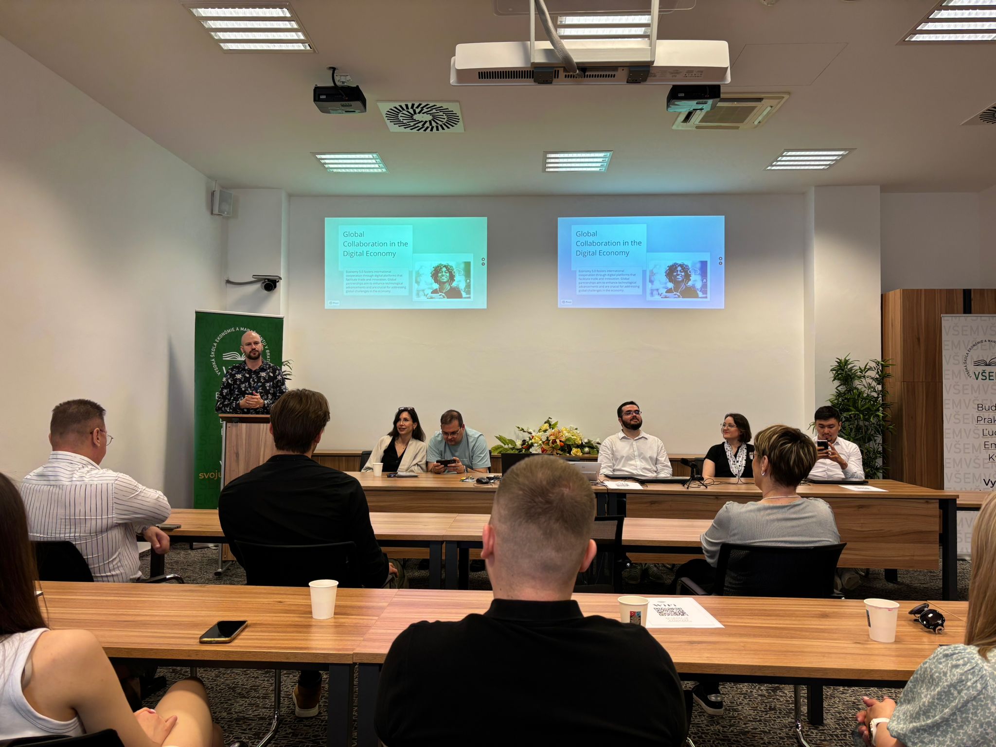 Dio programa uključivao je i poslovni ručak s partnerima iz industrije, kao i posjet lokalnoj poslovnoj zajednici u Bratislavi – odlična prilika za povezivanje akademskog i poslovnog svijeta. Posebno zanimljiv trenutak bilo je studentsko natjecanje o ulozi umjetne inteligencije u budućnosti rada, koje je izazvalo kreativne ideje i potaknulo raspravu o tome kako se AI već sada uklapa u svakodnevne akademske i profesionalne procese.